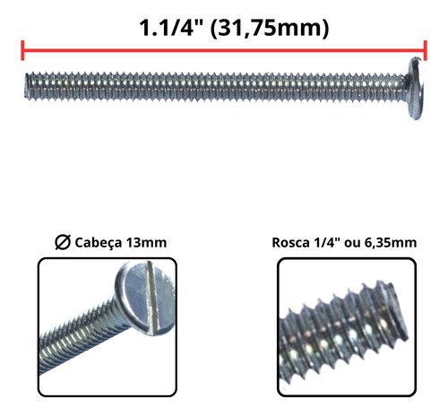 Parafuso 1/4 X 1 1/4 Rosca Maq. Cabeça Tampinha Fenda 10und