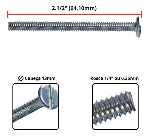 Kit Parafuso Maq 1/4 x 2 1/2 Tampinha Fenda ZB 10 Unidades