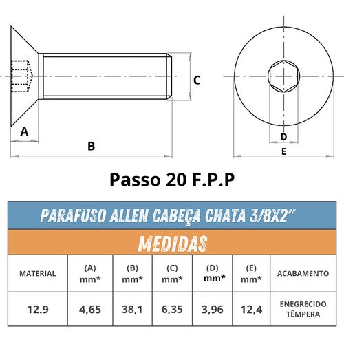 Parafuso Allen 1/4×1.1/2 Chata Unc Aço Et 10 Parafusos Allen