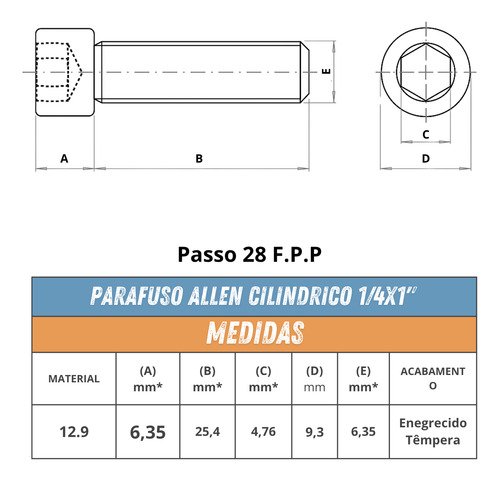O Parafuso Allen 1/4×1 Cilíndrico UNF Aço 12.9 da marca Luander é a escolha ideal para fixação de componentes mecânicos em máquinas e equipamentos. Com um comprimento de 25,4 mm e diâmetro de 6,35 mm, este parafuso possui uma cabeça cilíndrica com encaixe hexagonal interno, facilitando o uso da chave Allen.