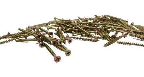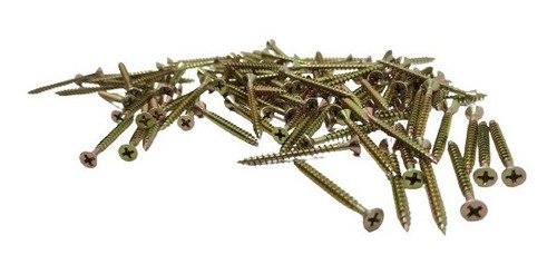 Parafuso Chipboard Cabeça Chata Ponta Agulha Bicromatizado (Kit com 100 Peças)