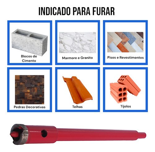 Construção Civil: Ideal para perfurações em paredes de concreto e alvenaria, garantindo cortes precisos e limpos.