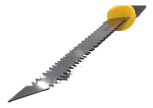 Leve e compacto ele conta com lâmina em aço temperado de alta qualidade com dois lados de corte, 7 dentes por polegada, proporcionando cortes mais precisos com bom acabamento, cabo plástico emborrachado, garantindo melhor pega facilitando sua utilização e manuseio.