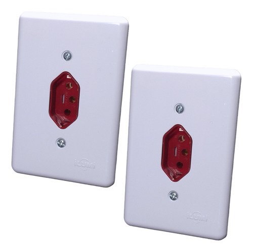 Tomada 2 Pinos + Terra 20a Ilumi Branco E Vermelho 2 Peças
