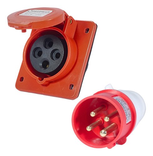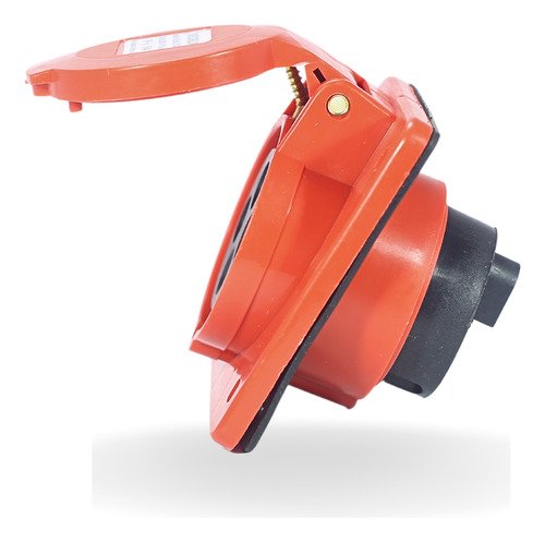 Cor Vermelha: A cor vermelha proporciona uma identificação visual clara, facilitando a localização da tomada e reforçando a segurança no ambiente industrial.