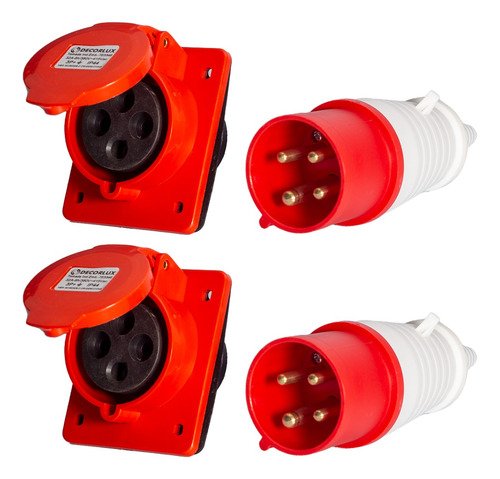 Tomada Industrial Embutir C/ Plug 32a 380-415v 3p+t 6h 2 Kit